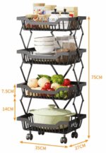 Μεταλλική ραφιέρα τετραώροφη, με ρόδες για εύκολη μετακίνηση. Πτυσσόμενη για να μην καταλαμβάνει χώρο όταν δεν χρησιμοποιείται, με εργονομικό σχεδιασμό για εύκολη καθημερινή χρήση.