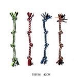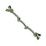 Παιχνίδι σκύλου σχοινί με κόμπους, από ελαστικό, ανθεκτικό, μη τοξικό πολυεστέρα, ιδανικό για παιχνίδια τραβήγματος/αντίστασης ενώ παράλληλα βοηθά στην υγιεινή στόματος του σκύλου σας καθώς καθαρίζει ήπια και απασχολεί τα δόντια του. Συνολικό μήκος: 42cm.